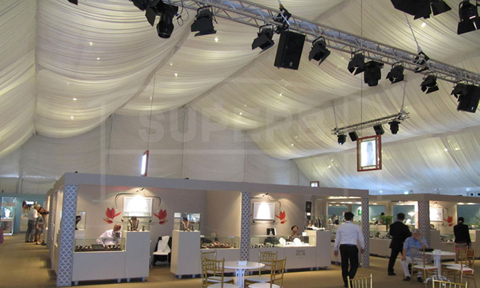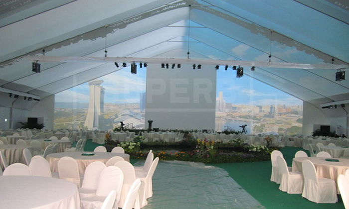 我司嚴格執行ISO9001的質量管理體系,確保不良產品的最小化及客戶滿意度的最大化。我們的的主要產品包括可移動的模塊化鋁合金支架篷房,有不同風格的篷房及裝飾可供選擇,篷房跨度從3米到60米。此外,還包括錐頂篷房和吊頂篷房,以及篷房配件,如照明燈具、地板、空調、桌椅及其它用于篷房內部的家具。篷房可廣泛應用于大小型活動、婚慶、展會、體育、酒店、航空和工業等其它領域。篷房框架結構為高強度鋁合金6061/T6型材,篷布為防水、阻燃的雙面PVC涂層聚酯纖維布,主體結構風載荷不少于100Km/h。