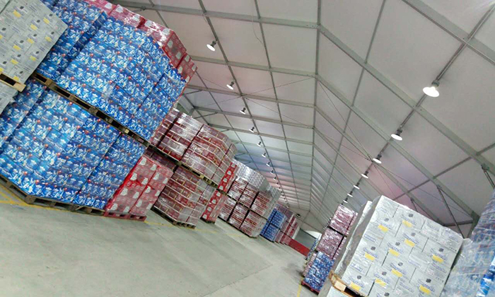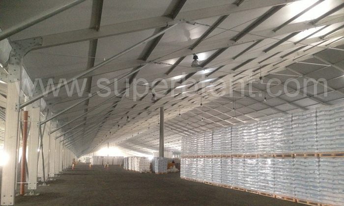 倉儲篷房主體也叫歐式篷房。歐式篷房不同于我們大眾理解的傳統意義上的帳篷。所謂篷房,顧名思義篷房在規模上可以媲美固定建筑。篷房的面積可以小到幾平米,大到幾萬平米,理論上甚至可以無限延展。篷房內部沒有支柱,空間100%利用。