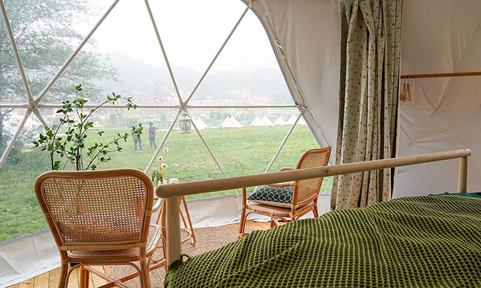 作為最新款酒店式帳篷,不管是材質對比PCV布的要耐用,外觀也更有特色,入住體驗好,適合打造成網紅款來運營,可以為景區(qū)吸引大量人氣。