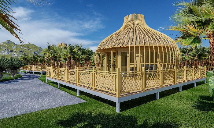 設(shè)計(jì)理念源于“鳥(niǎo)籠”結(jié)構(gòu)整齊大氣的布局令人歸隱山林,敞開(kāi)心扉,歸隱山林,具有開(kāi)放式的玲瓏造型,賦予了它獨(dú)特的真實(shí)感和具有震撼力的形體,外觀即為建筑的結(jié)構(gòu),立面與結(jié)構(gòu)達(dá)到了高度的統(tǒng)一。室內(nèi)設(shè)有臥室和洗漱間,